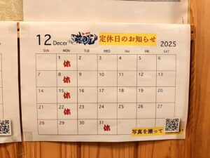 - 12月定休日のお知らせ
